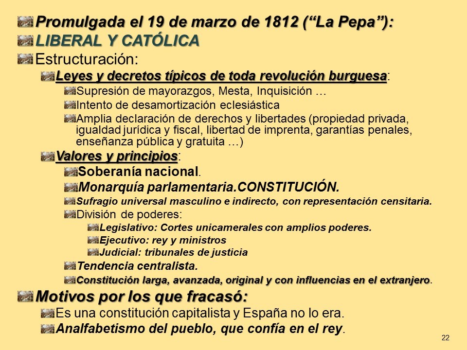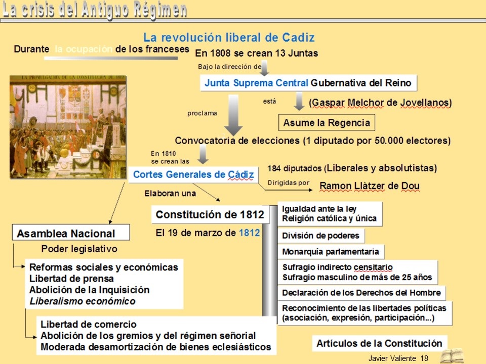 CONSTITUCIÓN DE CÁDIZ DE 1812. Cuestionario bastante completo acerca del texto constitucional base del liberalismo español.