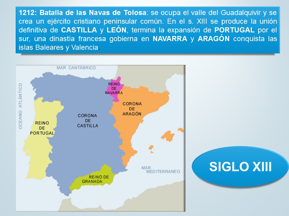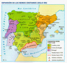 La Corona de Castilla se forma tras la unión definitiva de los reinos de Castilla y de León, en el año 1230, bajo el rey Fernando III el Santo. En el año 1212, la alianza entre los reyes Alfonso VIII de Castilla, Pedro II de Aragón y Sancho VII de Navarra, alcanzó una gran victoria sobre los almohades en la batalla de las Navas de Tolosa. Este hecho hizo posible que en los años siguientes los castellanos conquistaran el valle del Guadalquivir. Así, Fernando III ocupó Córdoba, Jaén y Sevilla, y su hijo, Alfonso X, Niebla y Cádiz. La Corona de Castilla contaba con unas instituciones de gobierno similares a las de los otros reinos cristianos de la península. Las principales era: