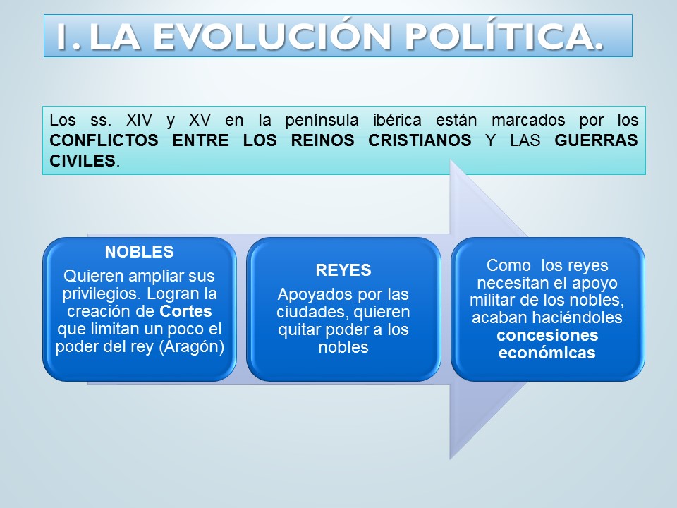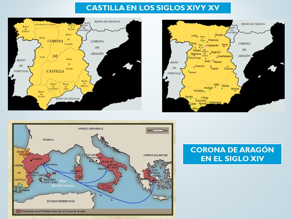 • Las Cortes: en un principio reunían a los tres estamentos (nobleza, clero y estado llano), pero pronto los dos primeros dejaron de asistir y quedaron constituidas solo por representantes de las ciudades. En Castilla, solo tenían funciones consultivas: aprobaban el pago de impuestos y presentaban peticiones al rey.